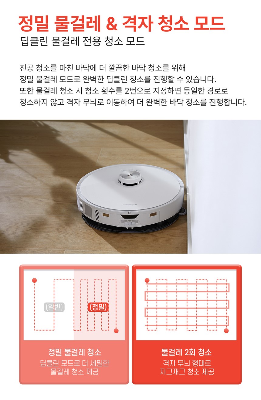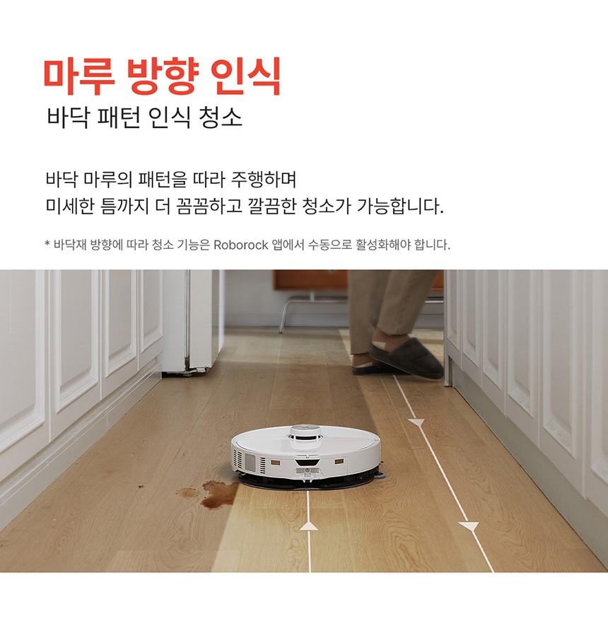 - 바닥 마루 패턴 인식: 마루 패턴을 따라 더욱 꼼꼼하게 청소합니다.