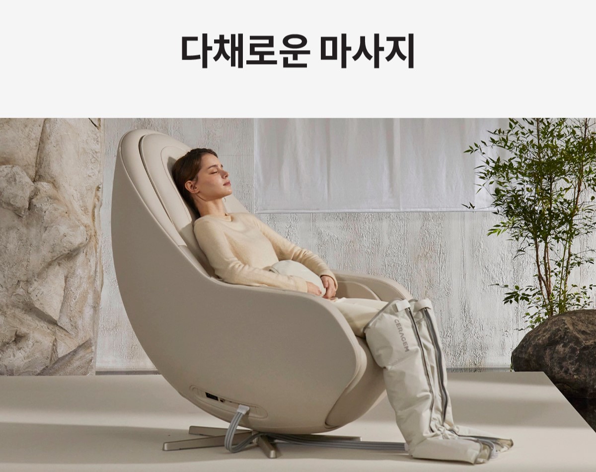 세라젬 파우제 M6는 전신 관리를 목표로 하며, 다리와 복부까지 세심한 마사지를 제공합니다.