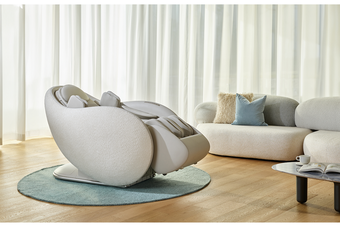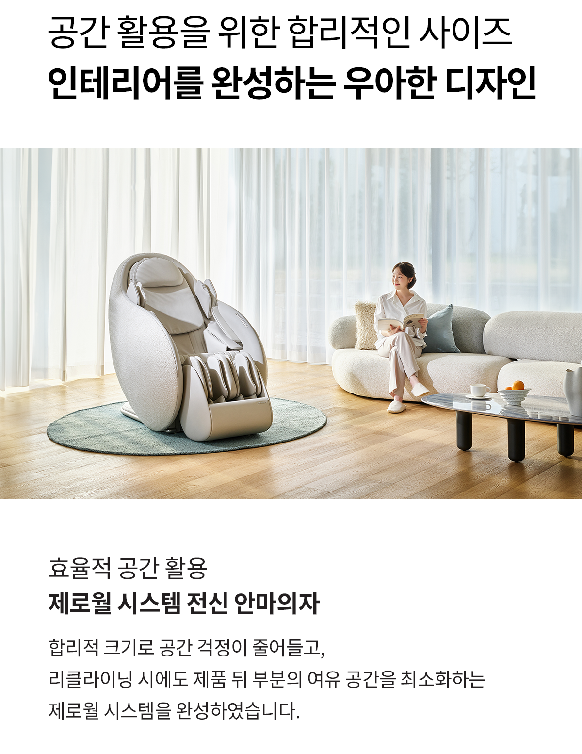 세라젬 M8은 부드러운 곡선을 살린 디자인과 고급스러운 부클레 패브릭 소재를 사용하여 세련되고 따뜻한 분위기를 연출합니다. 어떤 인테리어에도 자연스럽게 어우러지며 공간에 품격을 더하는 디자인이죠. 특히 제로월 시스템을 적용하여 벽과의 간격을 최소화하여 공간 활용도를 높였습니다. 160도까지 리클라이닝해도 뒤 공간이 필요 없다는 점은 좁은 공간에서도 안마의자를 효율적으로 사용할 수 있도록 해줍니다. 색상은 크림 베이지, 초콜릿 브라운 두 가지로 출시되어 취향에 따라 선택 가능합니다.
