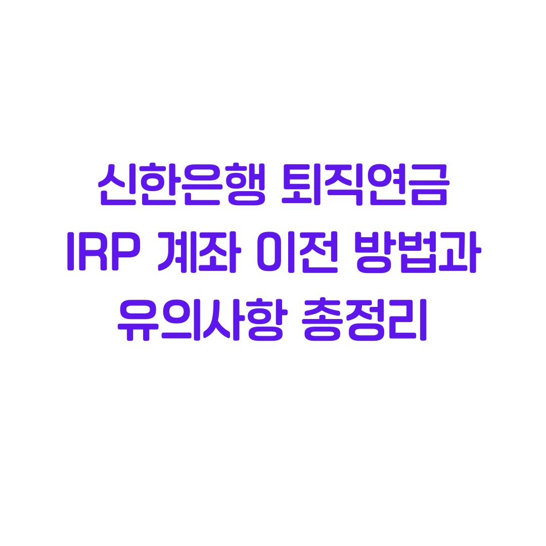 이 글에서는 신한은행 IRP 계좌를 이전하는 방법과 발생할 수 있는 세금, 유의해야 할 사항까지 상세히 안내해 드리겠습니다. 퇴직연금 계좌 이전을 고려하고 있다면 끝까지 읽어보세요!