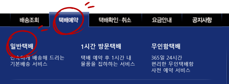 한진택배 홈페이지를 이용한 반품 접수 방법