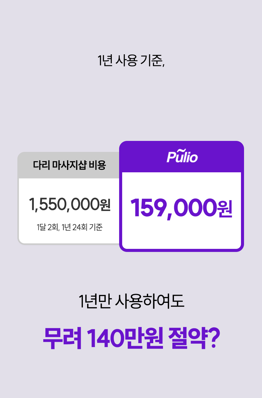 - 마사지가 필요한 이유: 피로가 쌓여 굳어버린 종아리 근육은 혈액순환을 방해하고, 부종과 통증을 유발할 수 있습니다. 이를 풀리오 V3가 세밀하게 자극하여 피로를 효과적으로 해소합니다.