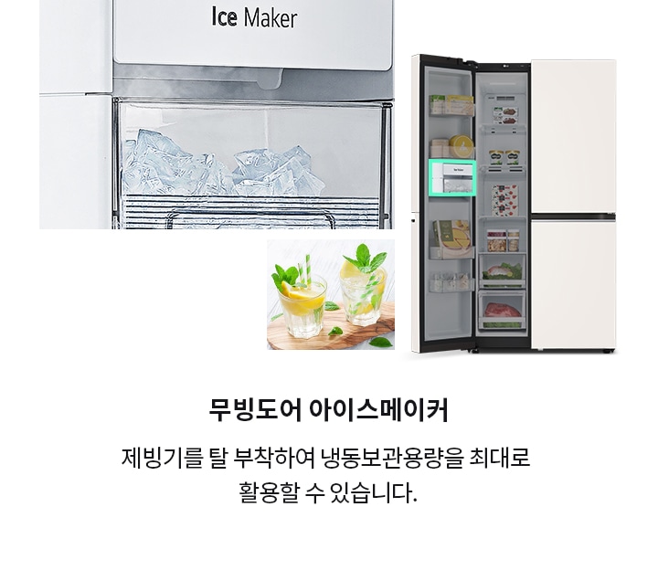 - 신선야채실: 과일과 야채를 신선하게 보관할 수 있는 전용 공간입니다. 습도 조절 기능으로 신선도를 오랫동안 유지하여 맛과 영양을 지켜줍니다.