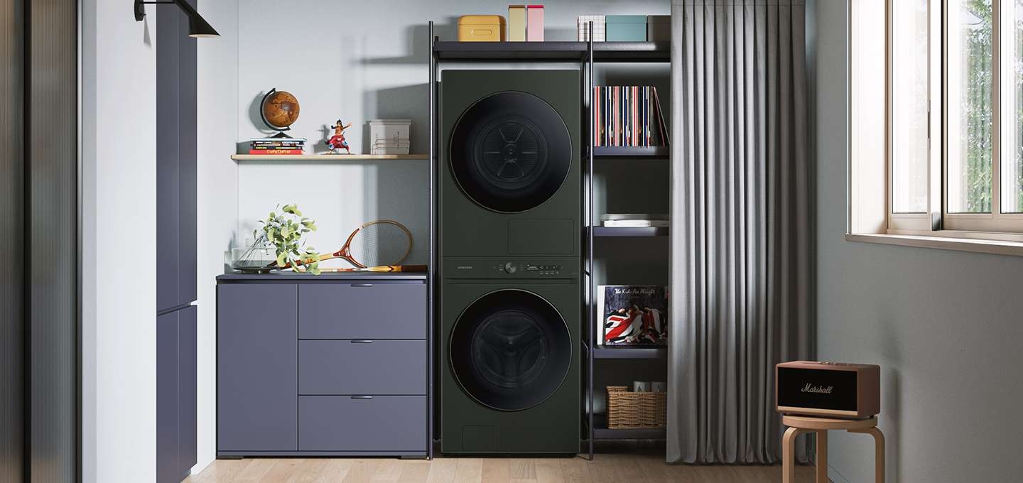 BESPOKE 그랑데 AI 원바디 Top-Fit은 세탁실 뿐만 아니라 드레스룸, 욕실 등 다양한 공간에 설치할 수 있습니다. 컴팩트한 디자인으로 공간 활용도를 높일 수 있으며, 다양한 색상 옵션으로 인테리어와의 조화도 고려할 수 있습니다.