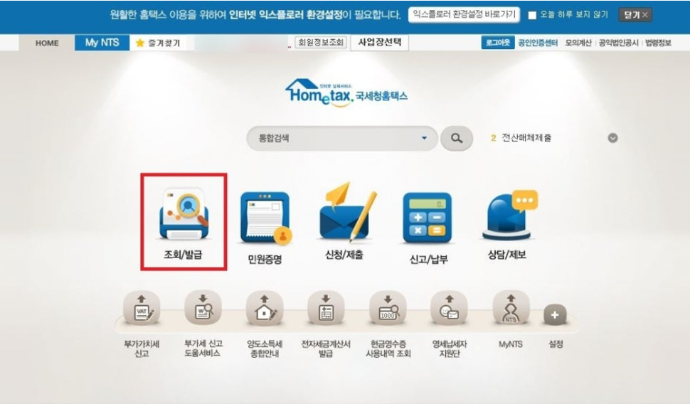 - 홈택스 메인 화면에서