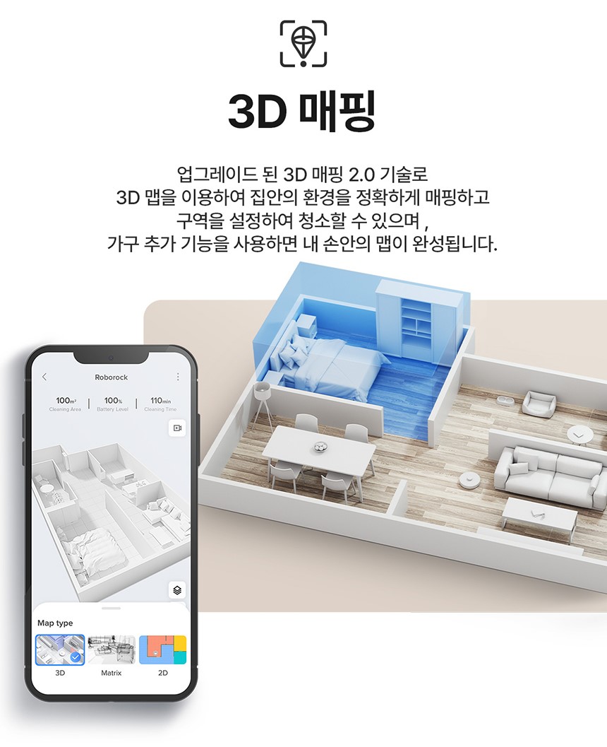 - 복층 구조 매핑: 최대 4개 층까지 인식하여 각 층에 맞는 청소를 수행합니다.