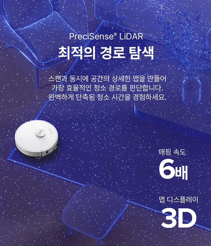 - 빠른 매핑: 일반 매핑보다 최대 6배 빠른 속도로 공간을 인식합니다.