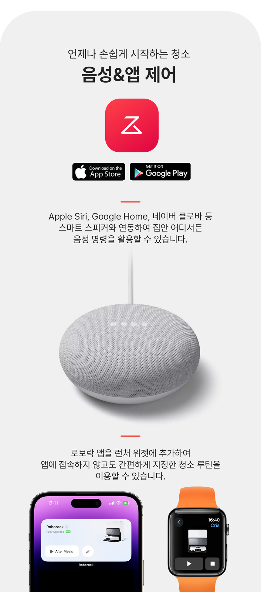 - 스마트 음성 안내: "헬로우 로키"라고 부르면 음성으로 청소를 제어할 수 있습니다.