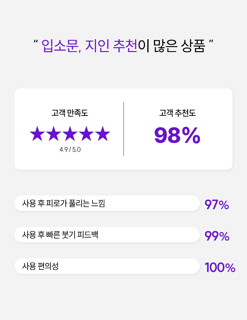 5단계 강도 조절로 마사지 초보자부터 고수까지, 나에게 딱 맞는 강도를 선택할 수 있습니다.