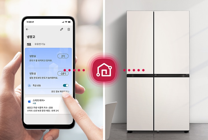 LG ThinQ 앱을 사용하면 언제 어디서든 냉장고를 편리하게 제어할 수 있습니다. 냉장고 온도 조절, 매직스페이스 설정, 에너지 사용량 확인 등 다양한 기능을 스마트폰으로 간편하게 이용할 수 있습니다.