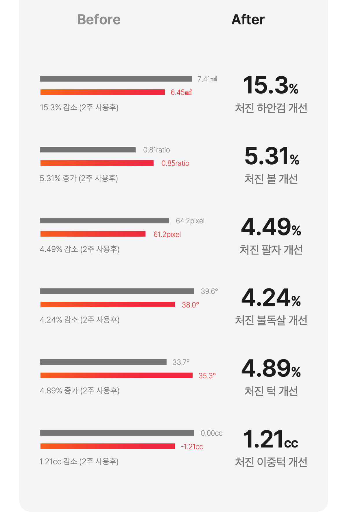 - 늘어진 피부 조직을 탄탄하게 잡아주어 매끈한 피부 결 완성